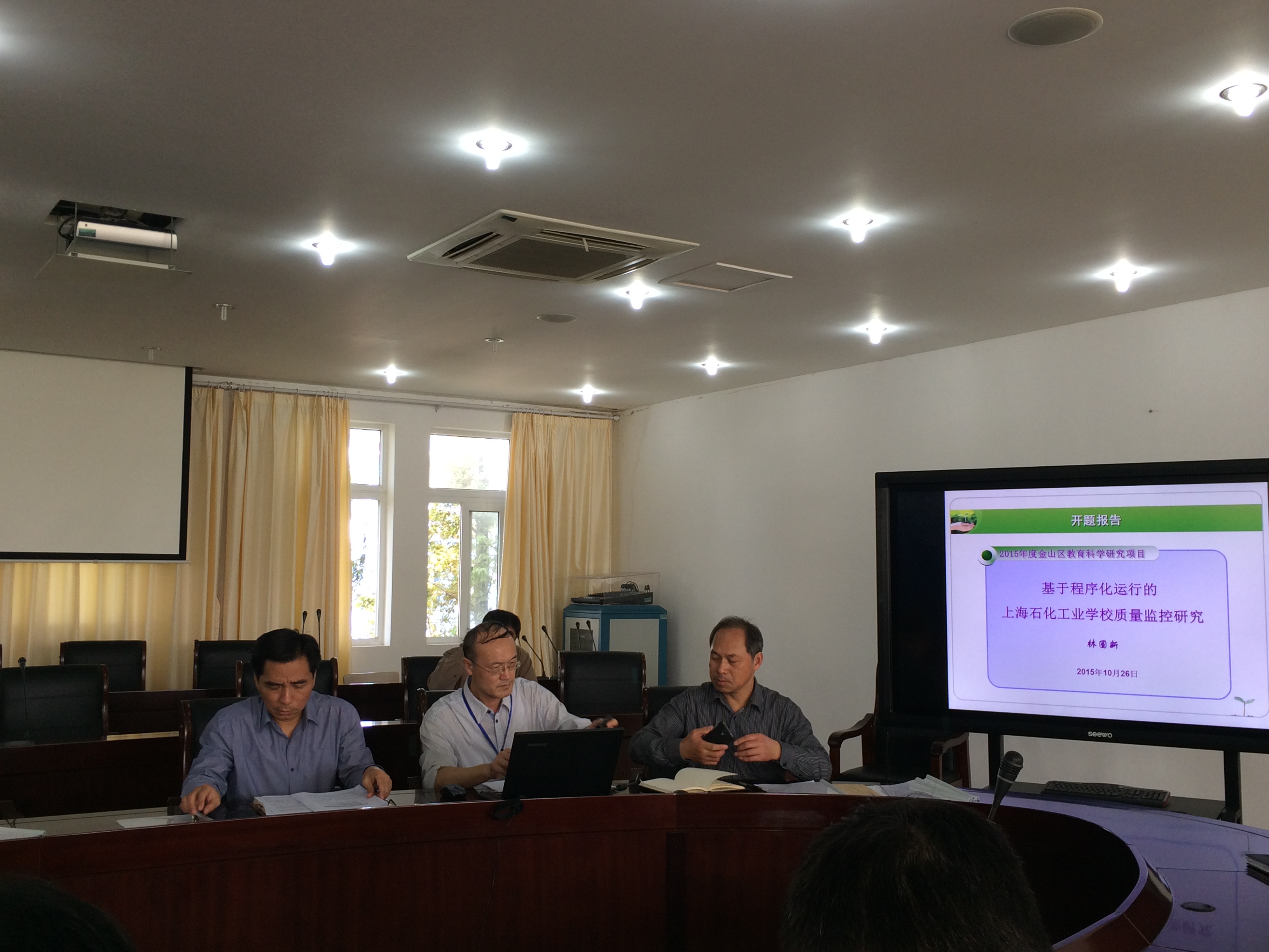 26日下午,由我校主持行政工作的副校长林国新牵头申报,并被立为2015年金山区教科研项目重点课题的《基于程序化运行的上海石化工业学校质量监控研究》在我校办公楼五楼召开课题开题会议。参与本次开题会议的有四位评议专家,分别为上海教科院职成教所副所长陈嵩、上海教科院职成教所研究院董奇、金山区教育学院科研室主任丁永章以及金山区教育督导办公室主任胡锦中,参会的还有本课题组成员林国新、黄汉军、施新生等14人。此次开题会议由丁永章主任主持。