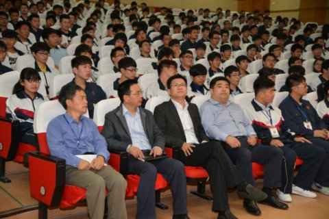 延锋伟世通的徐部长从进我校的感受说起,清洁的校园、学生的精神面貌及有纪律性的进入会场都留下深刻的印象。随着技术的发展,在产业工人的人数上会有减少,但对产业工人的要求会越来越高,徐部长对怀揣着青春梦想的学生提了一个提议,做好坚持、脚踏实地、学会积累及沉淀,遵循校训“善学修德、精技致业”,迎接制造2025美好的天空。
