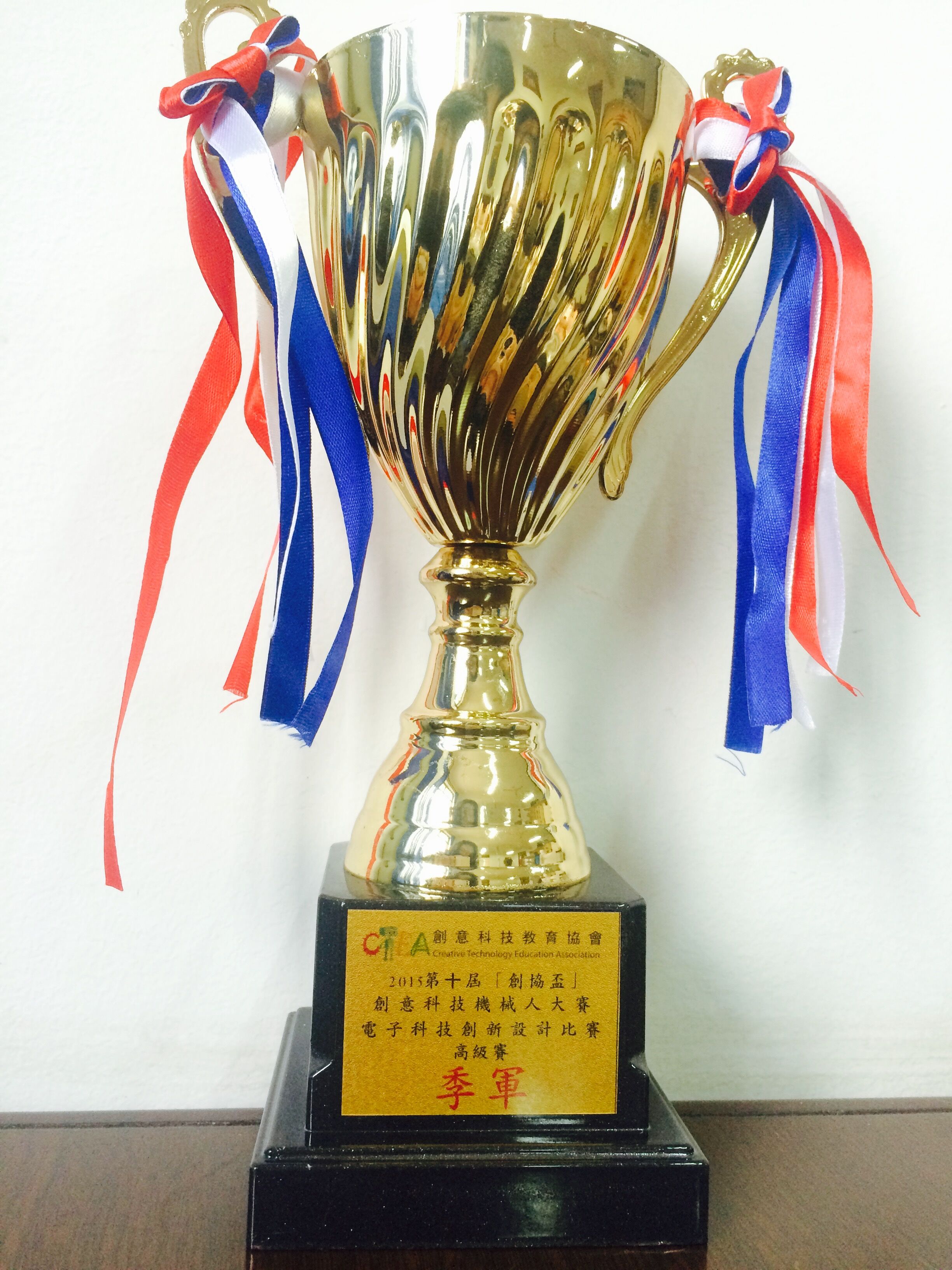 由于同学们的认真努力,我们在“机器人电子科技创新设计”项目上取得了高级组季军的好成绩,虽然没有得到冠军,但是大家心里都很开心,通过自己的努力,获得了同学、老师、家长、评委们的认可,对我们来说就是最大的奖励!也相信通过这次磨砺,获得的不仅仅是奖杯!