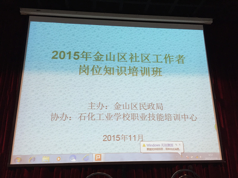 据悉,这次培训是在今年全区居委会刚刚完成换届后,区民政局为了加强社区工作队伍社区服务能力,提升社区工作专业化、职业化水平,计划于11月20日前交由区内培训机构完成的社区工作者全员培训。培训中心闻讯后,抓住机遇及时与区民政局洽谈,积极争取政府购买服务项目。借助今年上半年圆满完成金山区2015年“全国社会工作师助理”职业水平考前培训项目的优势,培训中心争取到了再度与区民政局合作办学的机会。