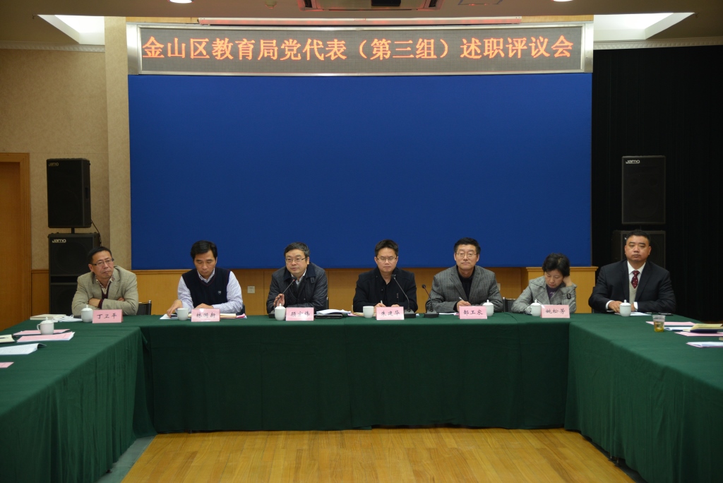 2015年12月2日下午,金山区教育局党代表(第三组)述职评议会在我校B区多功能厅举行,教育局党委副书记、局长顾宏伟出席并讲话,中共金山区委组织员朱建华、中共金山区委党校副校长郜工农参加点评。会议由我校党委委员、主持行政工作副校长林国新主持。我校党代表、共建单位代表、家长代表及团干部代表40余人出席会议。