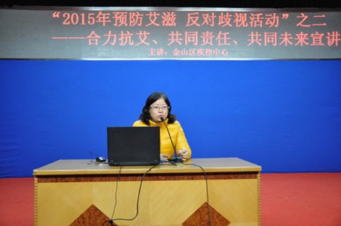 2015年12月16日下午15点10分,我校B区报告厅开展了一场“2015年预防艾滋,反对歧视活动”――合力抗艾、共同责任、共同未来宣讲活动。由金山区疾控中心性结科主任干红卫老师主讲。