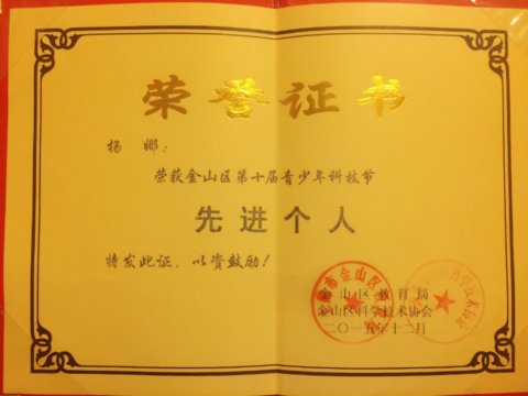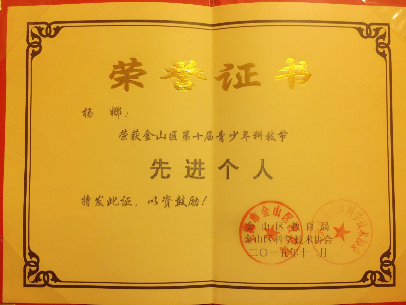 12月24日下午13:00,由金山区教育局、金山区科委科协联合主办的金山区第十届青少年科技节闭幕式,在张堰中学隆重举行。区教育局黄萍副局长、区科委科协陆富官副主任等领导出席了活动。全区各中小学教育分管校长及科技辅导员及部分学生代表参加了会议。我校劳技中心主任孙峰及杨娜老师参加了会议。杨娜老师在会上荣获金山区第十届青少年科技节“先进个人”称号。