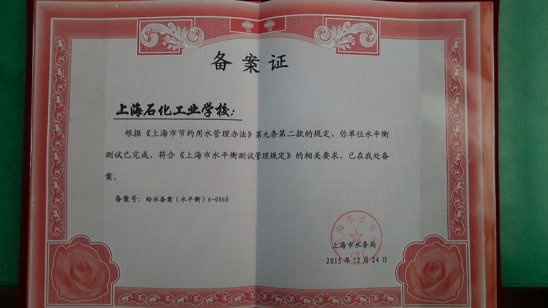 最后由专家组为学校颁发了《水量平衡测试备案证》,顺利通过了我校节水型学校创建评估工作。(《节水型校园合格证》将于2016年5月上海市节水月时颁发)