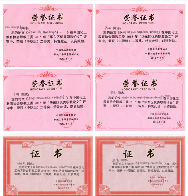2016年初喜讯频传,继我校参评机电专指委论文评选全数获奖之后,我校再创佳绩。由中国化工教育协会职教工委华东区协作组举办的“中国化工教育协会华东区协作组2015年优秀职教论文”评选结果已于日前揭晓,本次论文评审依旧分高职、中职两个组别进行,分设一、二、三等奖。较之去年中职组的64篇论文,今年的评选竞争更加激烈,中职组共有80篇论文参与评审。共评出一等奖4名,二等奖7名,三等奖23名。我校选送的论文在此次评选中成绩斐然,此次我校共选送了8篇论文参加评选,7篇得奖,约占此次华东区中职组获奖总数的21%。我校获奖论文在总获奖论文等第中所占比重分别为25%、43%和13%。