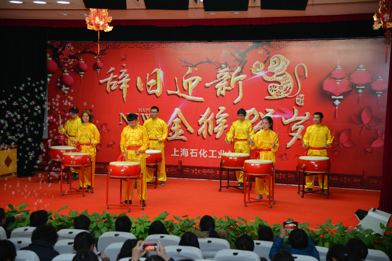 教工团支部表演的《鼓动明天》大气磅礴、声势浩荡,在喜庆吉祥的锣鼓声中拉开了整台联欢会的序幕!PPT大幕开启,一组学校成绩展示的影音视频带领大家回味起2015年学校一路风雨兼程收获的累累硕果。