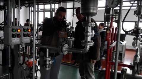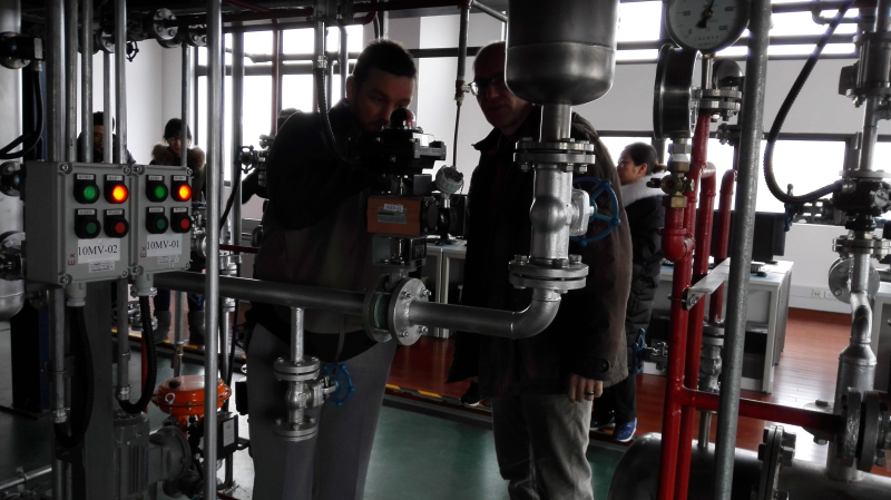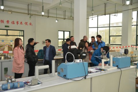 德国专家了解了学校的实训条件,首先前往参观徐文明老师负责的全国化工仪表技能大赛的培训现场,并进行了详细的交流。接着走访了三楼有机硅装置,张超和高文杰两位老师详细向德国专家介绍了有机硅装置的流程,目前的培训模块单元,如何实施考核等。最后达成一点共识:所有的模块并不一定非要放在一个综合项目中,并不需要面面俱到。