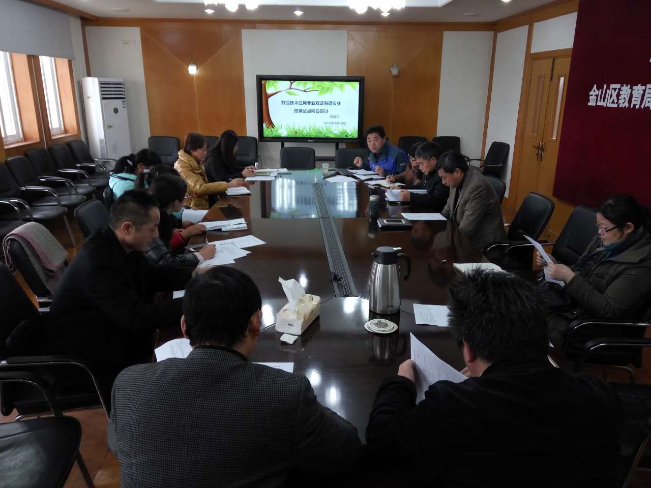 2016年3月10日下午15:30,在学校四楼会议室召开了数控技术应用专业双证融通改革试点阶段研讨会,副校长黄汉军,招毕办主任姜方芳,机电科科长王根发、副科长徐卫东,教务处副主任张丽英,12、13、 14、15级融通班班主任以及数控组全体教师共同参与此次会议。会议由徐卫东主持。