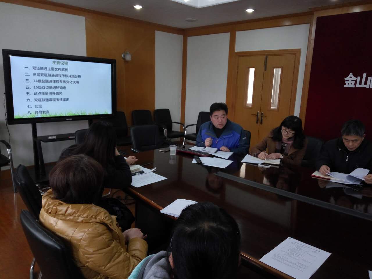 张丽英解读了双证融通课程考核鉴定相关文件。内容包括校双证融通课程考核鉴定站所的申请流程、双证融通课程鉴定流程图、双证融通课程鉴定技术人员职责。教务处潘慧华老师也向相关老师提出以下建议:上传数据交接要及时、数据的格式要符合要求、上传文件名要匹配、要提前一定时间上交资料,等待鉴定审核。姜方芳也向我们反馈了就业学生的质量跟踪反馈资料由第三方统一管理,并将积极支持与配合本次双证融通试点工作的顺利进行。通过交流,参会老师及时了解鉴定相关要求,鉴定技术人员的工作职责。