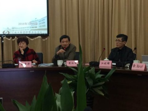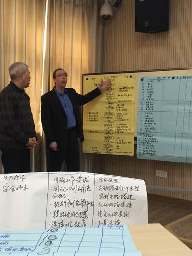 开班仪式后,继续开始了联合工作室的第一次联合培训,请到了来自德国的Mr. Horst先生进行“行为导向教学方法”培训。Horst先生曾在德国机电一体化教育中有多年的教学和标准制定研究经历,他给大家带来了原汁原味的基于行为导向六步法的项目设计方法和思路培训,并在他的指导下,工作室团队完成了一个简单一体化任务的项目设计初稿。