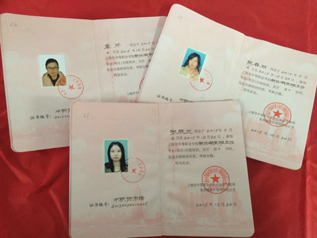 我校王凡、俞婕、章芹、张晓兰、阮春丽、时明荣六位教师于2015年5月至12月参加了由上海信息技术学校承担的上海市中等职业学校新任(转岗)班主任专业市级培训,历经半年多,经过集中培训和自我学习、参观、实践等环节,终于取得培训证书。
