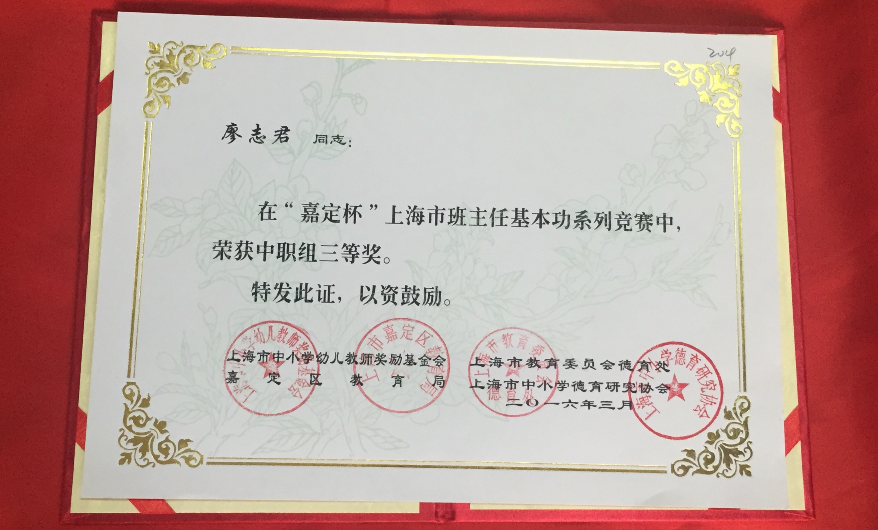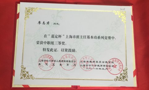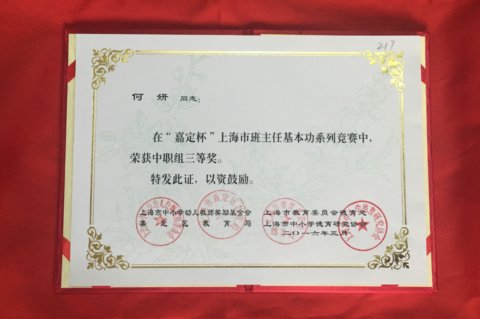 历时两年, 由上海市教育委员会德育处组织的以“拨动学生心弦的艺术”为主题的上海市“嘉定杯”中小学班主任基本功大赛落下帷幕。我校
