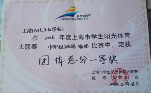 5月14日,2016年上海市阳光体育联赛跳踢比赛在上海市交通学校举行,由我校诸葛运国和尹吉玲两位老师带领的学校跳踢队表现出色,获得一等奖的佳绩。