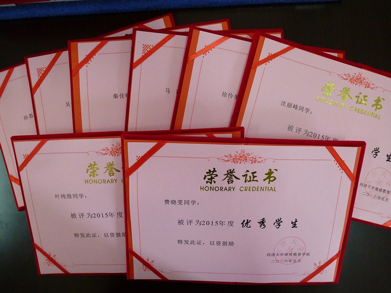 5月31日下午,培训中心部分优秀学生、优秀学生干部代表在学历部负责人马红霞老师的带领下乘车前往同济大学参加庆祝同济大学举办继续教育60年――同济大学2015年度成人教育教学奖励金颁奖典礼暨继续教育学院2015年度优秀学生和班级表彰会。