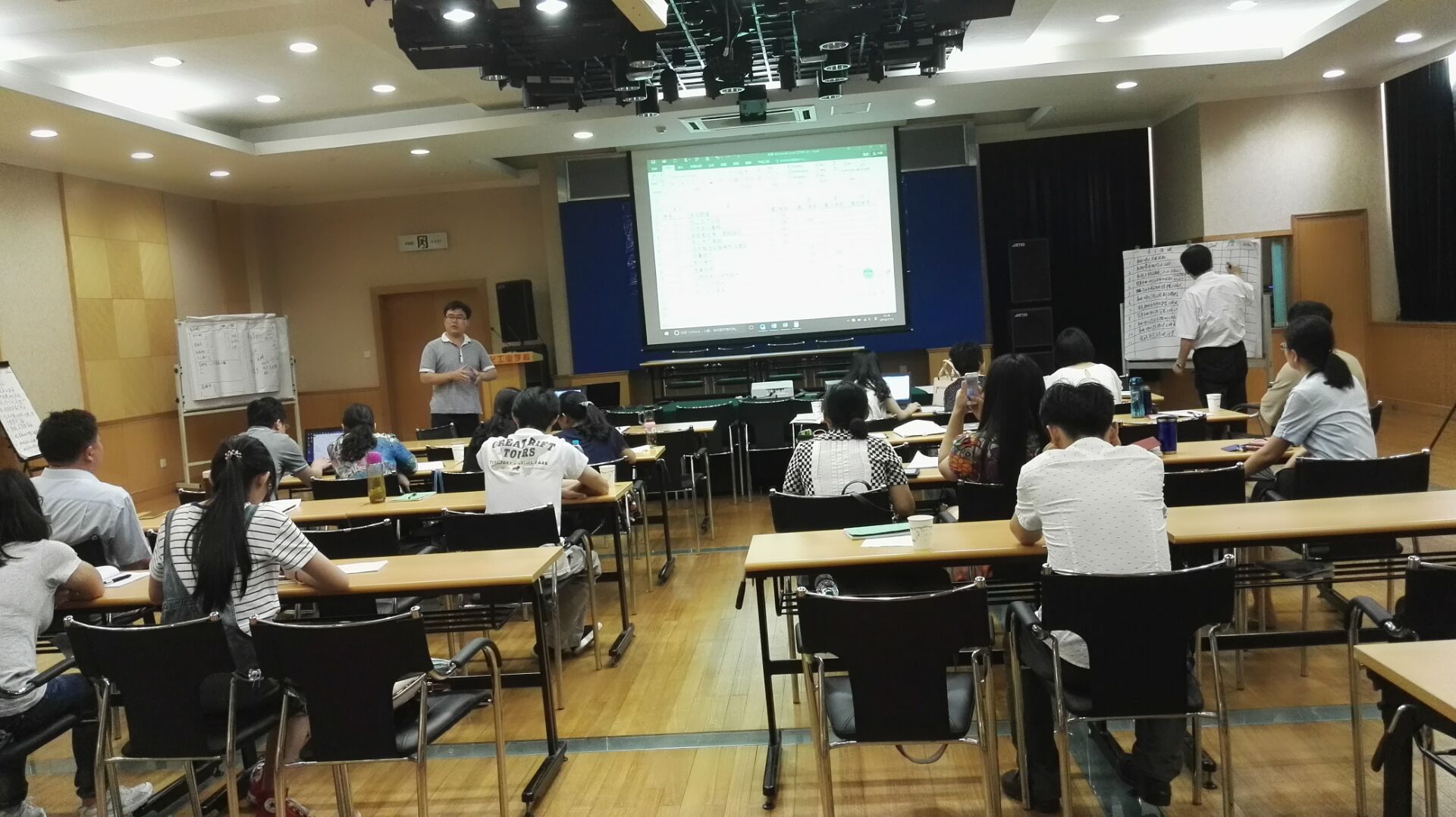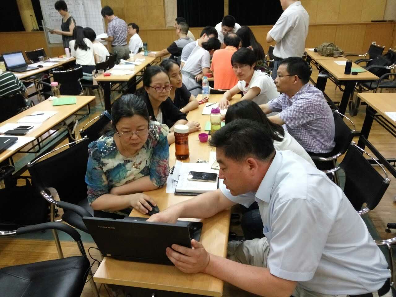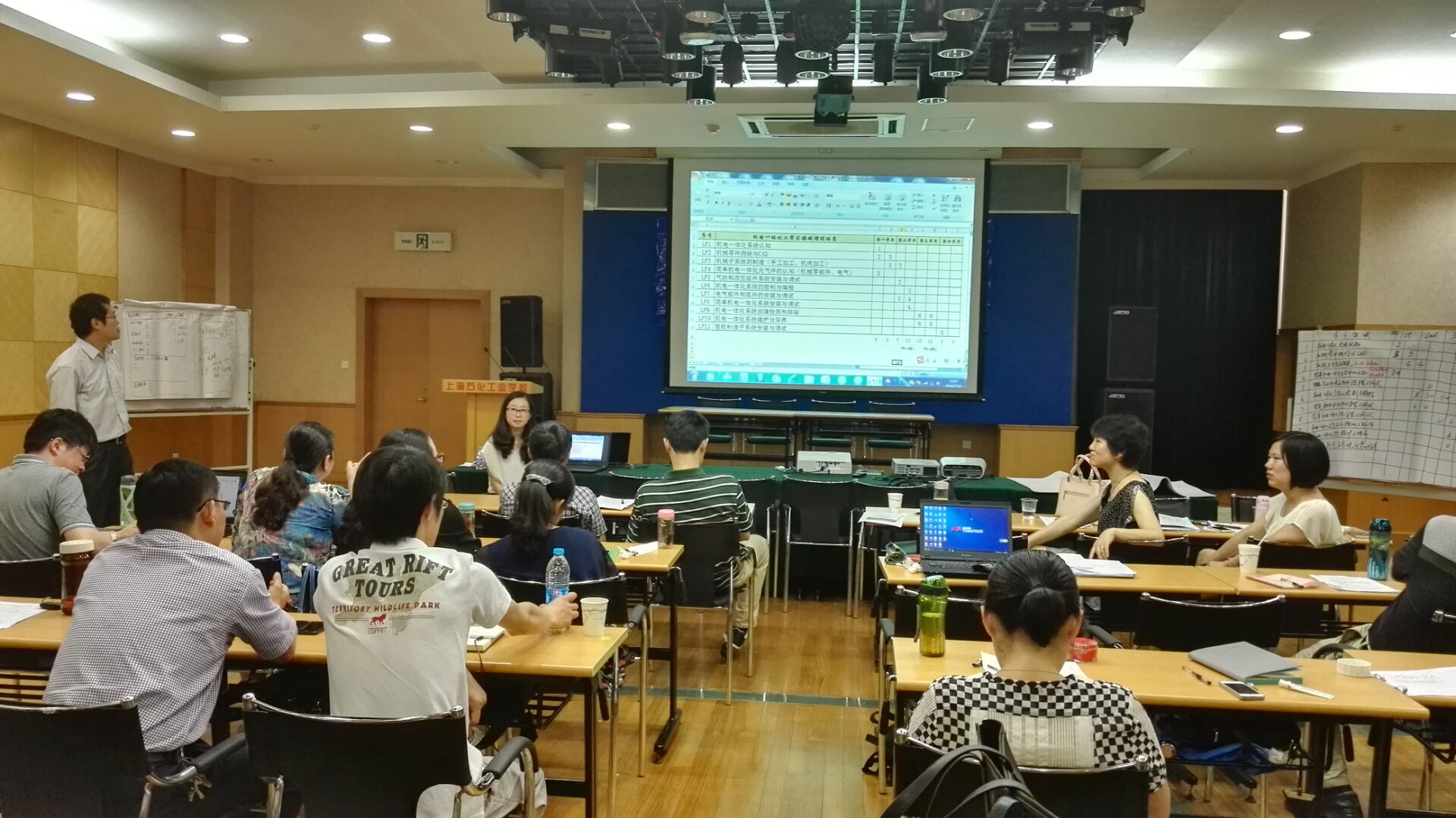 然后,岳老师通过讲练结合引导大家理解双元制职教精髓,先后布置了三项作业,组织化工、数控、机电三个专业组进行讨论和结果展示、交流,岳老师也经常参与到各组的讨论和讲解中。