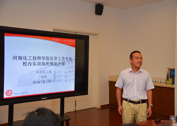 随后,各校代表分别介绍和分享了各自化工实训装备现有的和建设中的情况,由于各自都是区域比较有影响力的学校,学科背景深厚,专业基础较为扎实,因此装备条件相似度较高,同时大家也讨论了装备建设中碰到的问题,如装备开发设想与实际建成的落差,现行财政制度与采购装备质量之间的矛盾等。我校化工科科长王峥崎介绍了标准开发的框架,分解开发任务、明确时间表;同时,围绕高职装备标准的样例,提出了开发的初步设想。