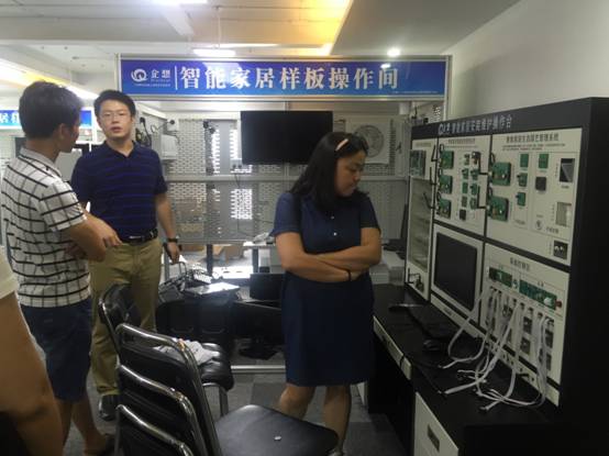 由企想上海区域市场总监带领参观了一系列智能家居产品、智慧生活沙盘等。所有的一切都只要通过智能终端控制即可实现,几位专业教师啧啧称奇,并表示希望能将这些先进技术引进课堂教学中。