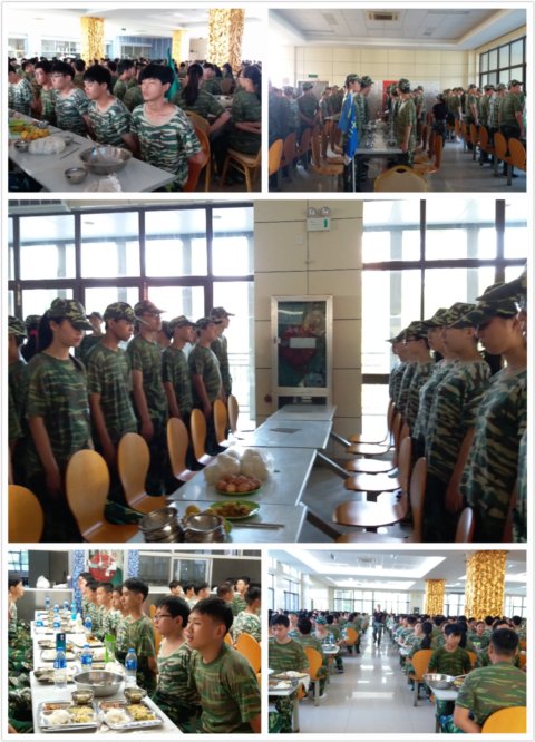军训期间就餐成为一道文明就餐的亮丽风景线。食堂门口,学生在教官带领下高呼“米饭”,提醒自己严格遵守进餐制度,吃饭时不得大声喧哗,保持安静。排队进入餐厅,围成圆桌,站立朗诵古诗“锄禾日当午,汗滴禾下土。谁知盘中餐,粒粒皆辛苦。”就餐时食堂里只有嘴嚼饭和碗筷碰撞的声音;用餐完毕时,自觉接受教官检查,真正做到了光盘行动,杜绝用餐浪费。