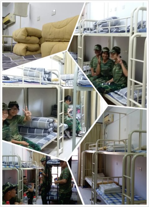 宿舍里,由教官带领全体成员学习内务标准再严格执行,从细微的物品摆放,到自己的床铺整理都严格要求。早晨8点半出操之前,所有同学全体出动,只为尽力达到军营的标准,为自己的连队争光,在内务评比中获得一个好成绩,同学们日渐团结、坚强。同时,严格遵守“五不”制度,不抽烟喝酒,男女同学不串门,严禁吃零食、泡面,严禁阳台上喧哗吵闹。
