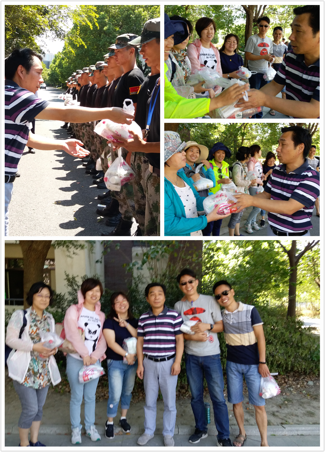 2016年8月30日上午,我校党委书记、主持行政工作的副校长林国新,副校长高炬一行在校办主任迮育彪的陪同下来到江苏昆山安博国防教育基地,亲切慰问奋战高温努力军训的2016级新生、班主任老师及南京军区政治学院和陆军指挥学院等部队教官,受到了同学、老师和教官的热烈欢迎。