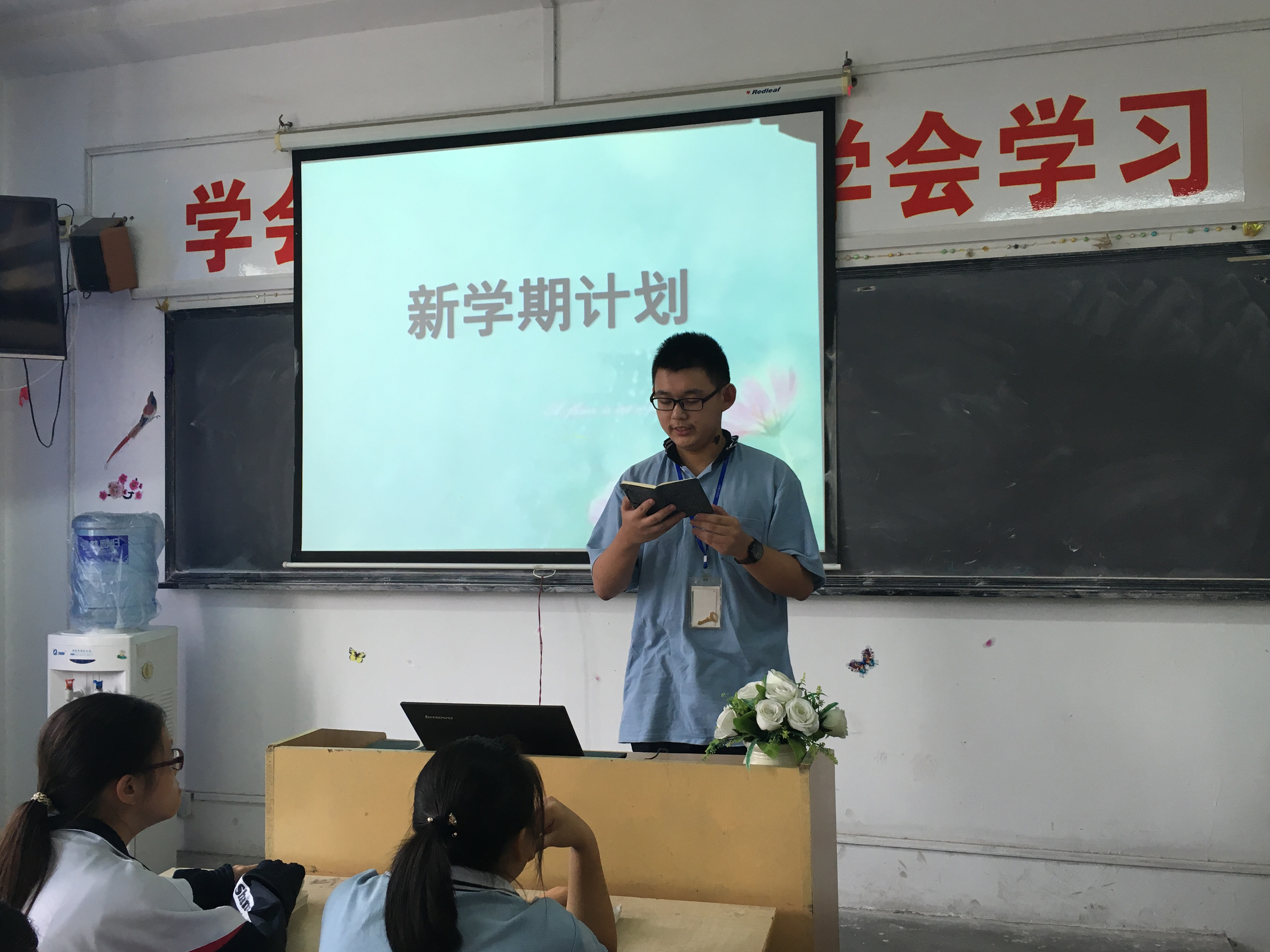 此次班会主要分为两个部分,在班会的第一部分同学们交流了彼此的暑假生活,畅谈假期里的得与失;班级的纪律委员、劳动委员和生活委员三位班委从日常行为规范管理中入手,提出了各自的建议;班级的学生代表分享了上学年的学习经验,学习委员陆文浩同学也为大家介绍了本学期的学习任务,同时分享了自己的学习计划。