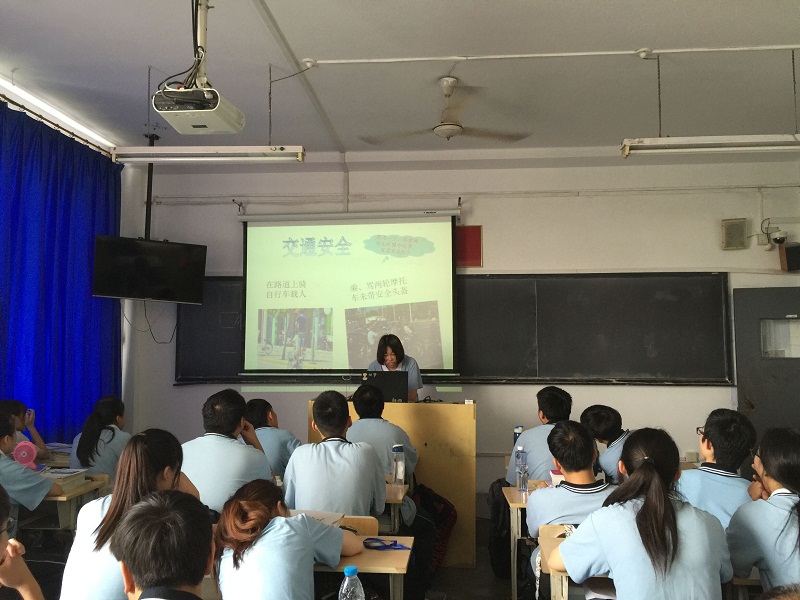 首先讲了近期上海的热点交通话题――在道路上骑车载人等一系列违反交通规则的行为。用生动风趣的小故事与其他严格遵守交通法规的国家作对比,引发同学们的深思。