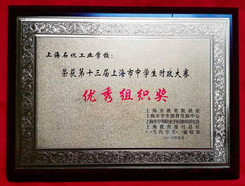 日前,我校荣获上海市第十三届中学生时政大赛优秀组织奖。回顾2016年时政大赛,荣誉确实来之不易。根据《上海市中等职业学校学生综合素质评价方案(试行)》精神,上海市中学生时政大赛被纳入学生综合素质评价体系的德育评价项目中,学生获奖结果将记入“上海市中等职业学校学生综合素质纪实报告”,因而上海各校的竞争处于白热化状态。
