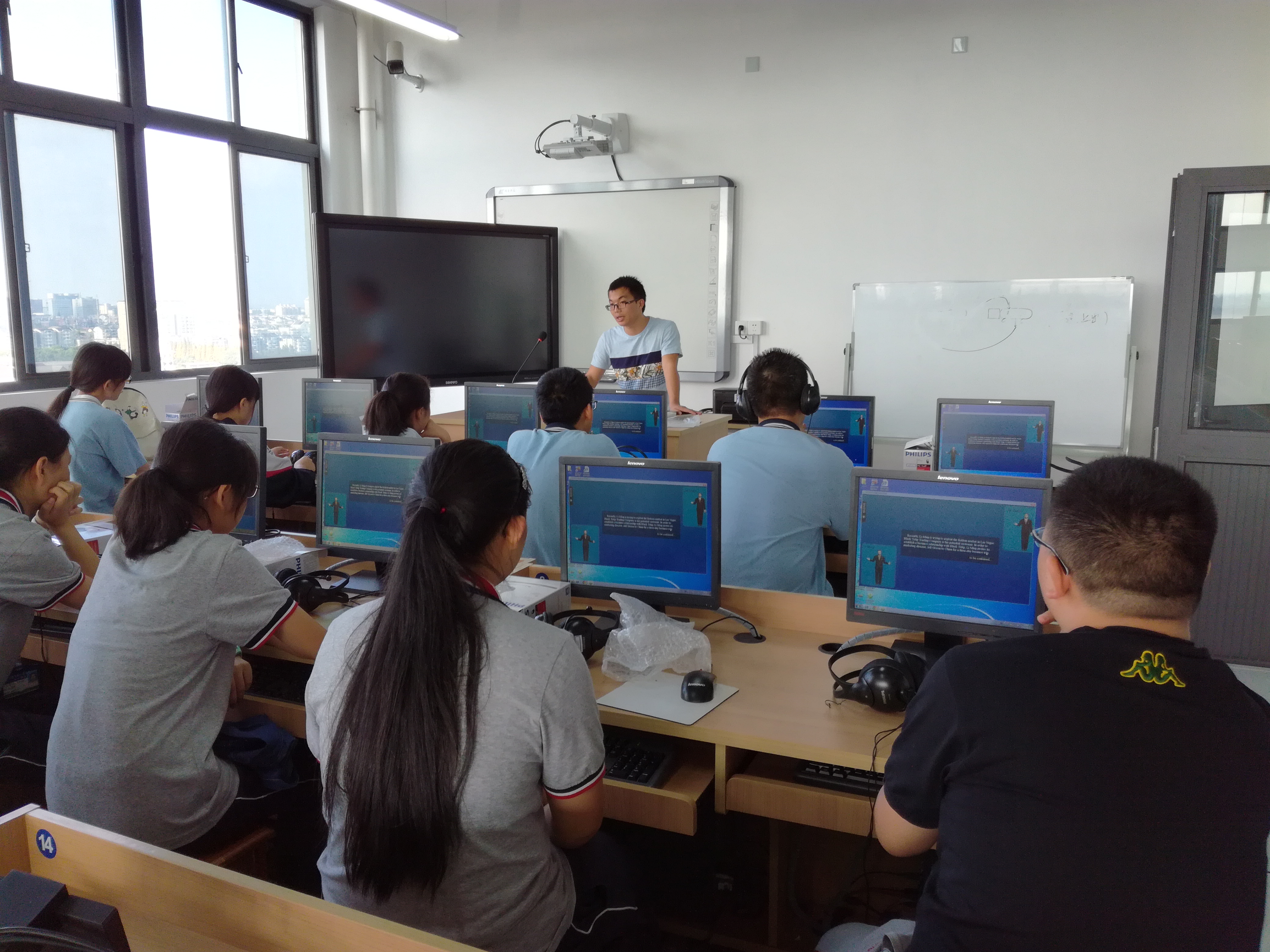 本学期,南区实训大楼9、10楼机房共安装了三套商务英语实训软件,即《3D仿真商务英语综合实训系统》、《商务英语3D情景口语实训系统》和《3D仿真商务英语函电实训系统》。为了使任课教师和学生更快地熟悉软件、掌握操作技巧,开学第二周商贸旅游教研组组织了两次培训活动。