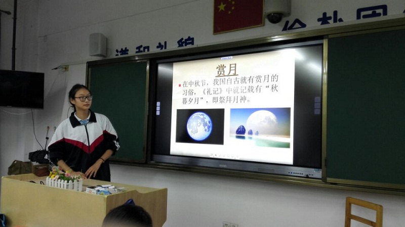 活动过程中团支书用PPT的形式,把同学们带入了节日的氛围,还与大家分享了中秋节的由来及神话传说“吴刚折桂、嫦娥奔月、玉兔捣药……”这些家喻户晓的神话故事代代相传,经久不息。这可能是我们今天读的最懂的一些赏月故事,最理解的关键词莫过于“团圆、幸福”。这也预示着过好中秋节,会给人们带来快乐和吉祥。这一天的圆月,被寄予了太多的文化符号和情感重量,毫无疑问,月是这一天的主角。