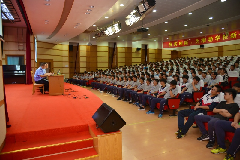 沈警官从自身的成长历程出发,告诫同学们在这花样年华,思想还不成熟,法制与是非观念模糊的时期,时时的教育和告戒是很有必要的。沈警官首先从学生的自我防范入手,对同学们经常遇到的被侵害、被偷、被骗等情况以具体案例详细分析,告诫同学们首先要有自我保护意识,遇到状况不要发慌,要懂得求助。其次要有法制观念,不能以暴制暴,不要因为一时的冲动,盲目地把自己从被害人变成加害人,一旦触犯了法律,就会受到法律的严惩。沈警官最后提醒全体同学,学生现阶段的主要任务是学习专业知识、锻炼好身体、学习做人道理,为日后踏入社会奠定基础。