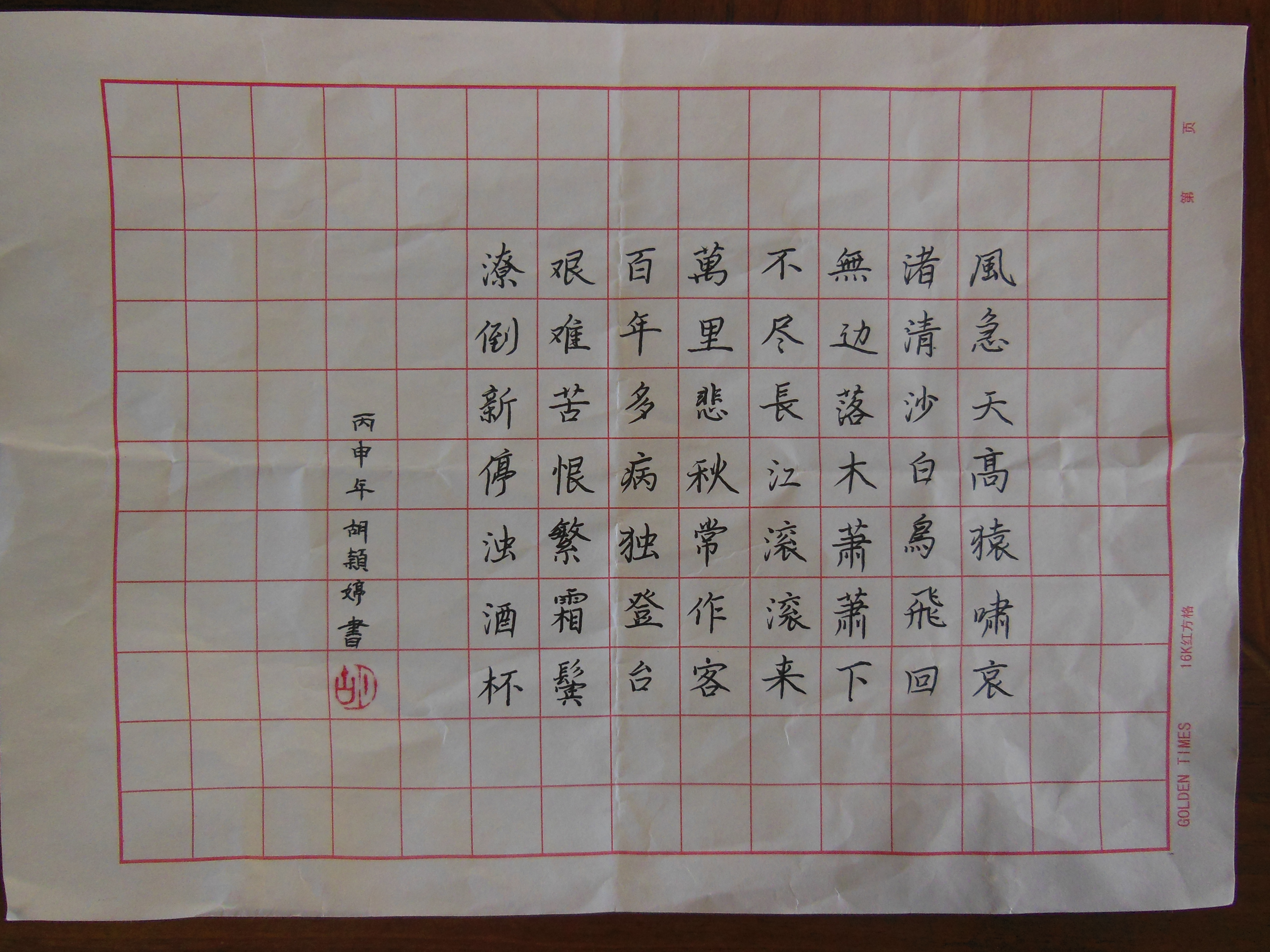 为了弘扬书法艺术,深化素质教育,激发学生对祖国灿烂文化和语言文字的热爱之情,化工科学生会于9月28日举行了硬笔书法比赛活动。来自14、15、16届60多名学生都积极的参加了此次比赛,共有18名选手获奖。赛场上的选手们个个都精神抖擞,遵守着离桌子一拳,眼睛离桌面约一尺距离的规则,端正地一笔一画写着字,有的行云流水,有的笔走龙蛇,各个笔酣墨饱,十分认真,而且每个人的字体都有各自的特点,正所谓字如其人。希望同学们在今后的日子里再接再厉,使人生如同自己的作品一般变得更加绚丽多彩。