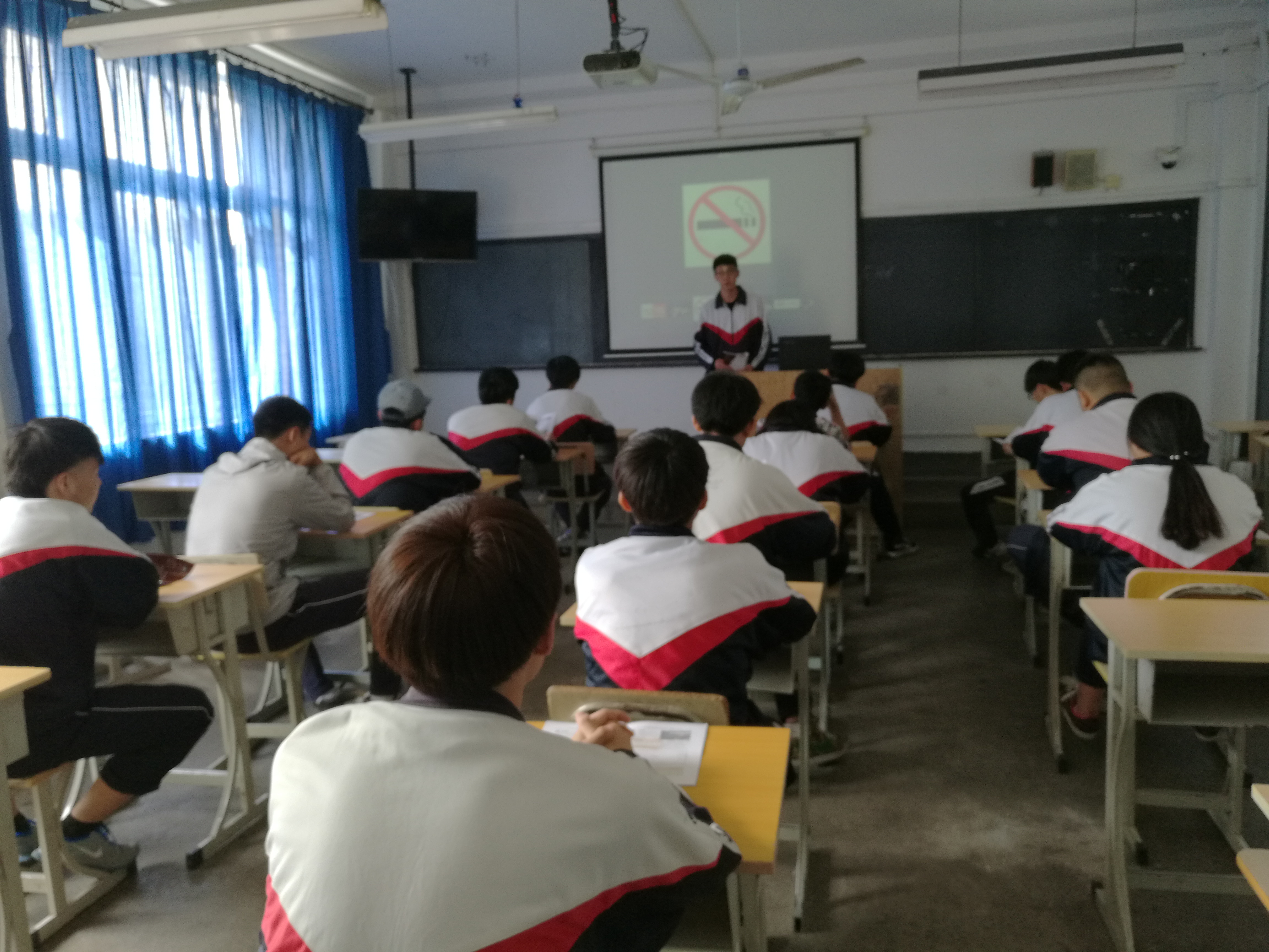 班级里有半成的学生是因为抽烟而受到处分,所以今天我们的活动举办的很及时,同学们也愿意走上台来跟大家说出自己的抽烟史,主要是随大流和耍酷的因素造成。那么给你们多一次选择,你知道怎么可以戒烟吗?来自131化工C班的一位同学说他在学校里想抽烟的话,就吃颗糖。随后,班主任给大家展示了4种戒烟的方法和技巧―参与体育活动、咀嚼口香糖、餐后多喝果汁、减少“条件反射”。最后,我们请大家谨记以上的戒烟方法,并请大家大声的读了出来,以此来提醒我们的学生离烟三分。