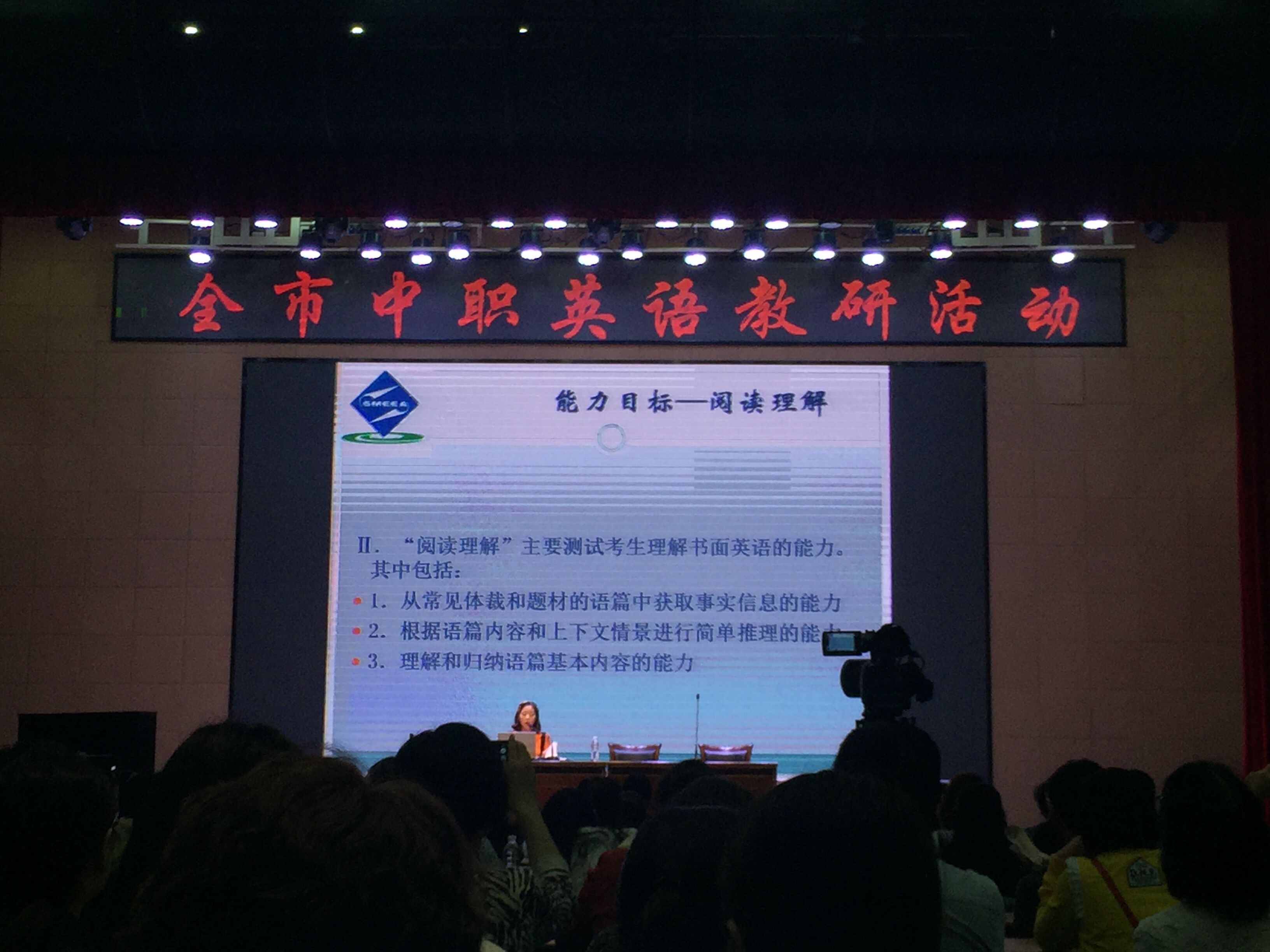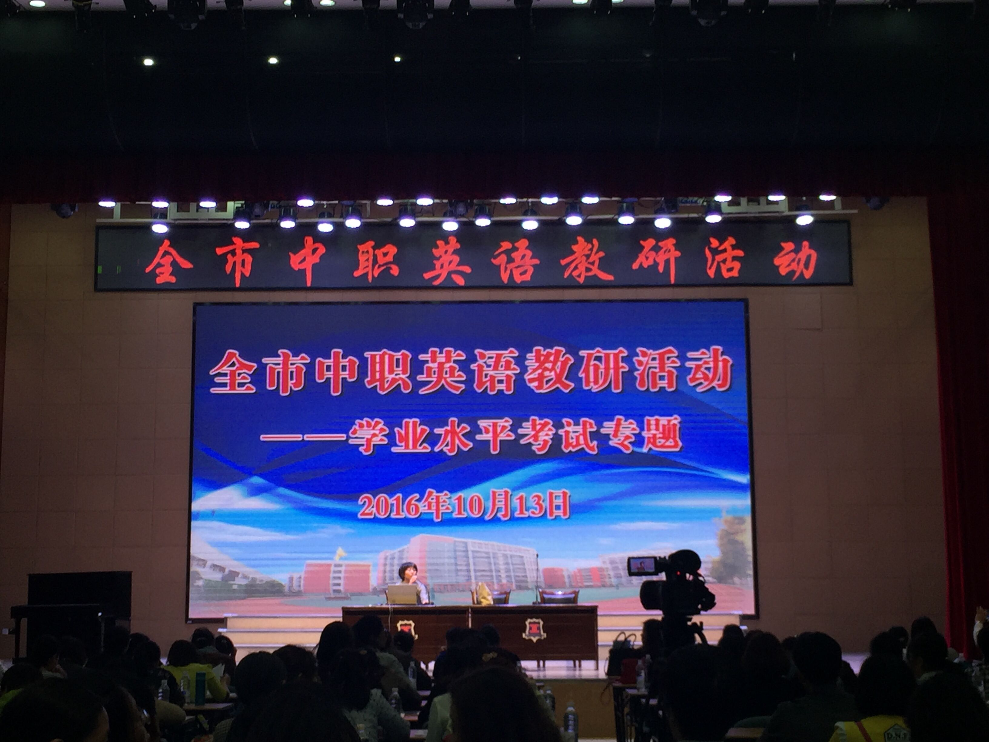 此次教研活动由上海市职成教研究部英语教研员陆勤操老师主持,她首先解说了2016年下半年的工作计划,接着重点讲述了学业水平测试的调研结果、应对策略和命题原则,陆老师一再强调在准备学业水平测试中,要让基于标准的课程评价深入人心。