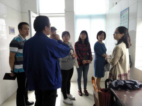 在黄忠明经理的陪同下,我们首先参观了废气环保处理中心。黄经理主要介绍了环保处理中心的大致操作流程、主要设备、管路以及设备和管路的材质、连接方式,老师们亲自体验了液体料罐装的大致操作流程。随后,我们来到了罐车区域,黄经理讲解了不同类型罐车的结构(如,装卸料的位置、罐车腹部隆起结构的设计原理等)以及安全注意事项。最后,我们进入了上海中石化工物流的调度室,物流专业的殷洁、吴珍珍、常悦老师了解了调度室的员工们的工作流程和工作内容,研究了调度室操作需要的单证种类、和交接单的相关工作流程。