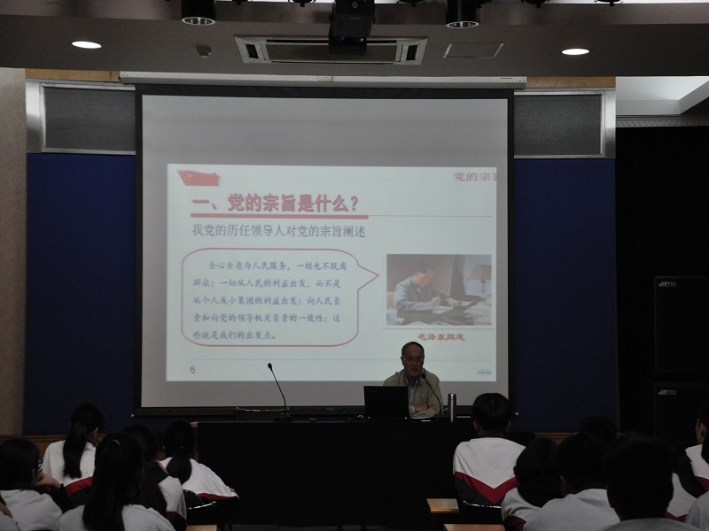 11月1日下午7,8节课,在B区二楼多功能厅进行了本学期的第二次党课培训。这次邀请到了学校教育研究室的朱文俊老师为我们授课,本次他为我们讲的主题为《党的宗旨》。