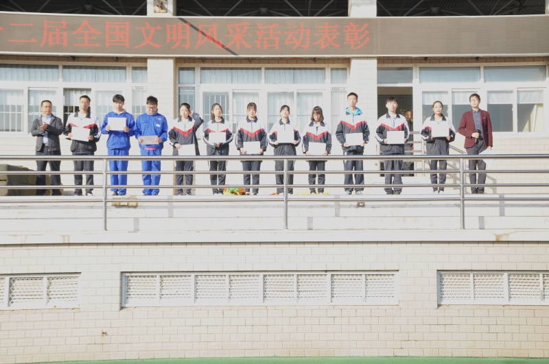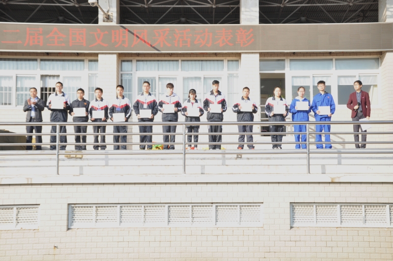 2016年11月3日上午7点40分,我校在北区操场进行了晨训活动,由学生处朱昕玮老师主持。此次晨训的主要议程是为获得“第十二届全国文明风采比赛”活动的团体及个人奖的同学颁奖。