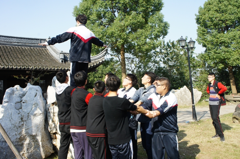 活动的第一天上午,我们分组进行了破冰游戏—生物进化论,从鸡蛋变成鸡仔,再变成猴子,最后进化成了人的过程。相互找同伴进行猜拳。赢者进化为鸡仔;而后找鸡仔同伴再猜拳,赢者进化人。在这个游戏过程中,同学们的氛围变得熟悉和轻松起来。中午,在导游的引领下,我们一行参观了梅花洲,她是个承载着灿烂文明的千年历史遗迹,因大小河道曲折潆绕、纵横交错,将地势惟妙地分成五瓣,状若梅花,故有“梅花洲”之名。同学们漫步西街,翰林书院、冯氏老宅、千年银杏、石佛古寺、三步两爿桥一一呈现眼前,仿佛一段穿越时光之旅,悠远的记忆、旧时的生活渐渐清晰。写尽了江南这一方盈水间千年不绝的韵味,再现了三百年的中国情怀。下午,同学们在训练老师的组织下,完成了信任背摔、生命履带和珠行万里三个团队游戏。帮助学员体会信任的建立,取决于自己对团队成员的信心,相互之间的沟通是树立这种信心的基础,一旦信任完全建立,你会感觉到团队的工作气氛是那么的轻松、愉快。