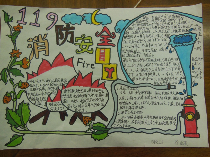 此次活动中各班级同学积极参与,用勤劳的双手,美丽的画笔在一张张白纸上告知我们,预防校园火灾是一项长抓不懈的工作。用简单而不平凡的文字告诉我们,学习消防知识是中学生在校学习期间不可或缺的一课。本次消防安全日手抄报共有59幅作品,这些参赛作品绝大部分主题鲜明,设计新颖,作品美观。经过化工科宣传部成员精心挑选后,公正的评比出了优秀的手抄报。