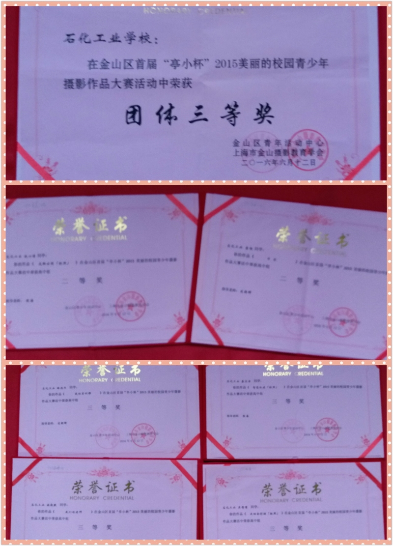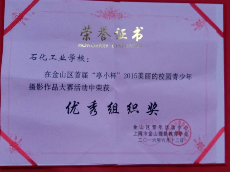本次活动由金山区青少年活动中心主办、金山区摄影教育学会、亭林小学承办。在学校学生处的组织下,我校积极参与,化工科凌朝晖老师和教务处已故陈坚老师以摄影社团为依托组织学生投稿,特别是凌朝晖老师带领摄影社团学生深入学校各类活动中,记录学生实验、体育比赛、志愿者活动的瞬间,留下每一位学子青春的记忆,通过指导老师精心辅导及专家的评审我校取得了很好的成绩。