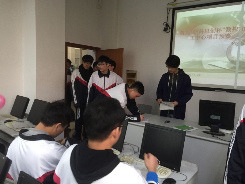 下午1510选手们准时来到数控大楼210212室签到,并按照工作人员指引入座。本次比赛参赛选手来自于141数控01班以及141数控02班的学生,共计83名同学;本项目以《数控机床操作工》(四级)技能鉴定的考核方案进行,预赛内容为《数控仿真加工》模块,主要利用数控仿真软件完成零件图纸仿真加工,既检验了学生是否具有扎实的基本功,又考察了学生对编程指令的运用能力和解决问题的随机应变能力;在1个小时紧张激烈的比赛过程中,同学们沉着冷静,认真应对,努力展现出自己最好的一面,都各自提交了作品。本次竞赛秉承公正、公开的原则,根据竞赛规程的评分细则,按照《关于举行上海石化工业学校第九届“科思创杯”学生职业技能竞赛活动的通知》中规定奖励办法,项目组评委老师将对同学们的零件进行评审,为每位参赛选手评分并按照成绩遴选出总人数的30%,进入决赛。