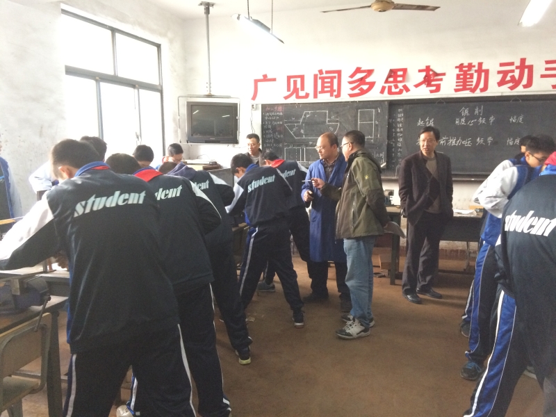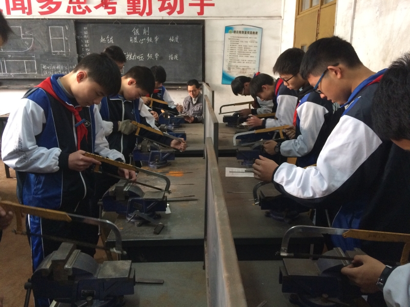 2016年11月28日上午10:20,在劳技楼钳工教室,劳技中心的季春浩老师开设了钳工课程中的《锯削》公开课,教学对象是来自蒙山中学的学生。劳技中心无课的六位老师进行了观摩和指导。