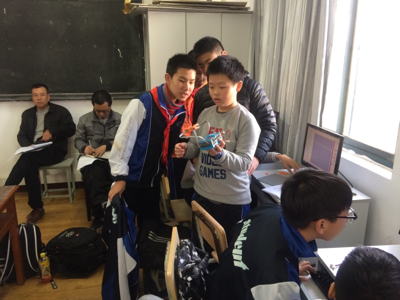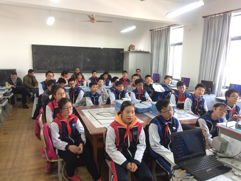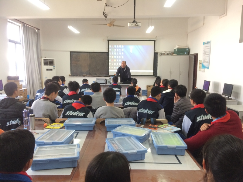 11月28日中午12:00白文军老师在劳技楼四楼开设了“双向红绿灯”的机器人教学公开课。