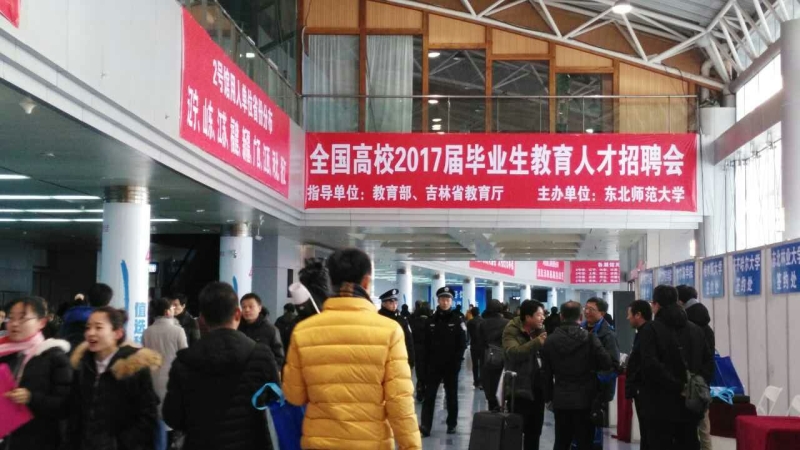12月3日,“全国高校2017届毕业生教育人才招聘会”在长春国际会展中心举行。此次人才招聘会,由教育部高校学生司和教师工作司指导,由东北师范大学主办,是教育部指定的唯一一个由高师院校承建的全国高校毕业生教育人才招聘会。当天,来自全国28个省(市、自治区)、153个城市的1000多家用人单位或教育局组团参加了此次洽谈会,提供37800多个就业岗位。据初步统计,本次招聘会有来自北京师范大学、华东师范大学、华中师范大学、陕西师范大学、西南师范大学、南京师范大学、湖南师范大学、华南师范大学、辽宁师范大学、哈尔滨师范大学等40余所高校的3万余名毕业生从外地赶来参会。