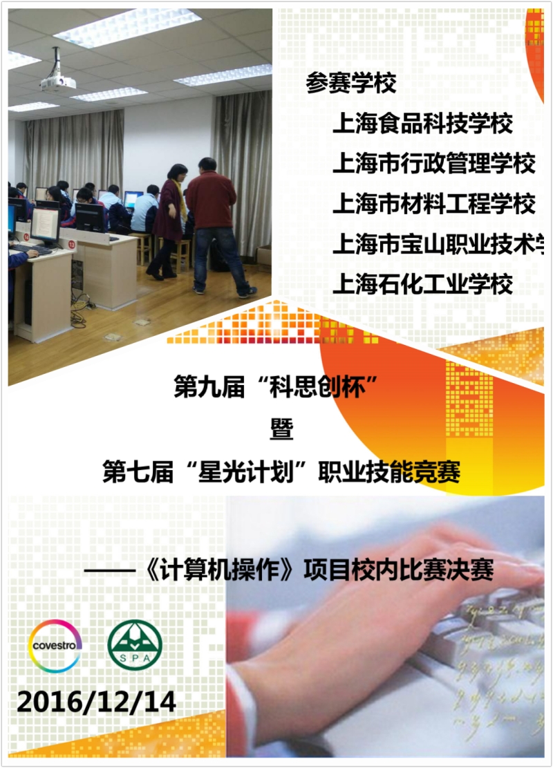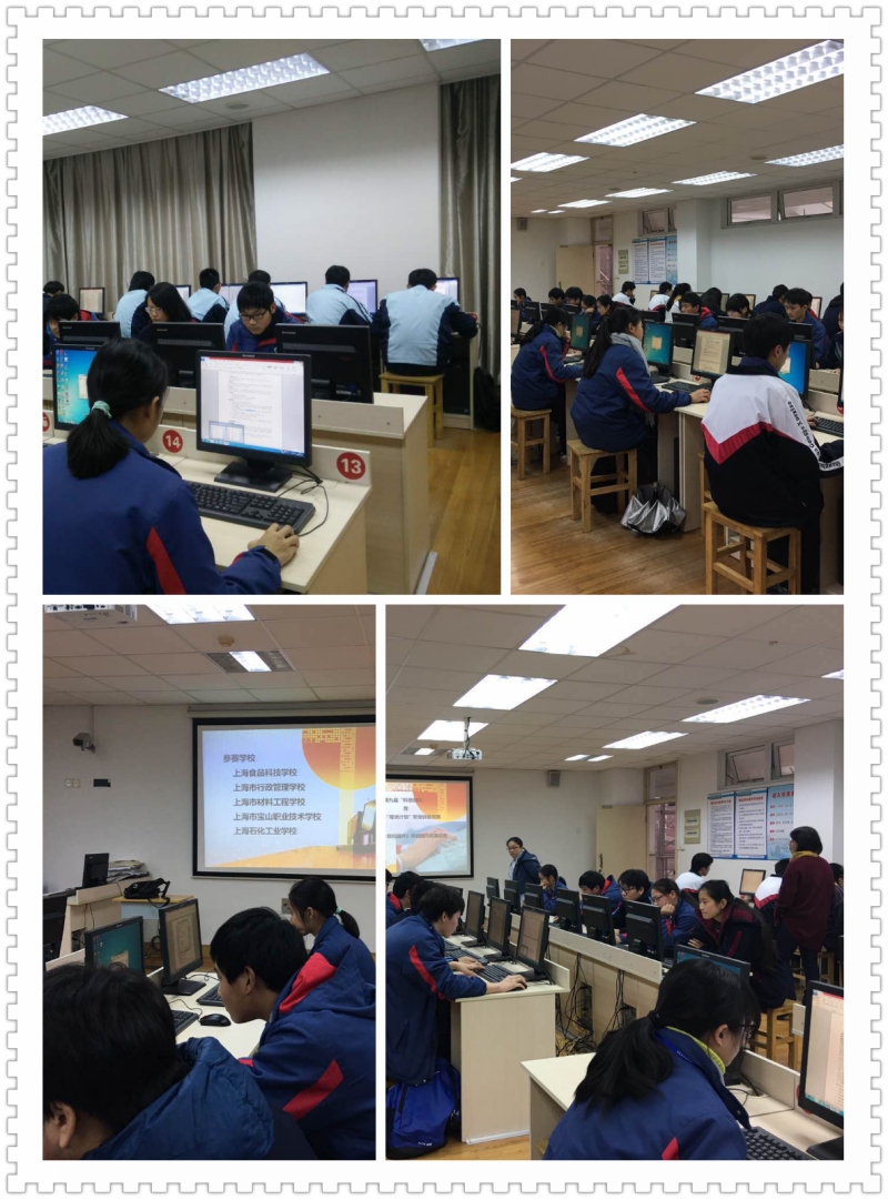 12月13日下午,由我校组织举办,上海食品科技学校、上海市行政管理学校、上海市材料工程学校、上海宝山职业技术学校四所友校选派的二十名选手和我校的三十位同学同台竞技,完成计算机操作项目的既定任务。