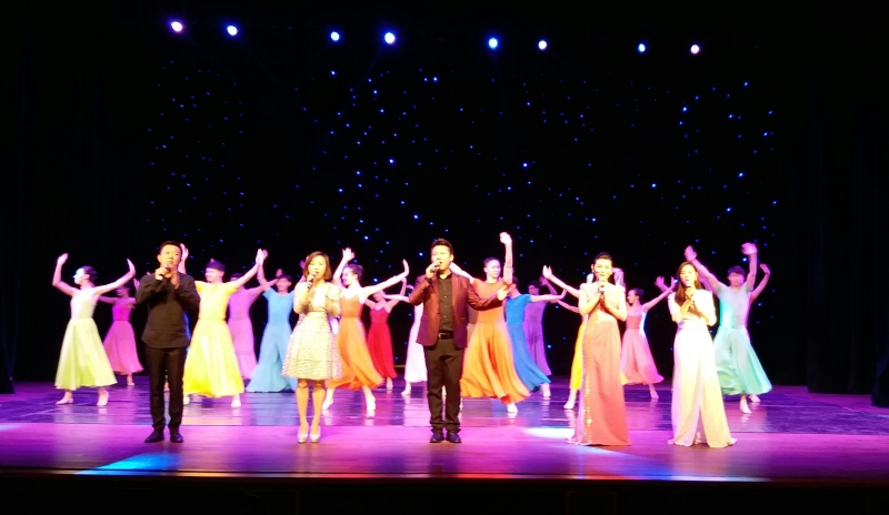 本次演出以群舞《龙飞凤舞》中拉开序幕。本场独具匠心的歌舞盛宴,现场气氛高涨,掌声连动,整场演出精彩纷呈。演出由十二个节目组成,节目环环相扣,异彩纷呈,既有技艺精湛的技巧展示,又有风格独到的民间舞组合表演。既有婉约优美的女子群舞《夜深沉》,着意于“古为今用,京为舞用”,以曼妙的肢体,妩媚的水袖,去演演绎京剧曲牌的美妙意境,曾荣获2010华东六省一市专业舞蹈比赛评委会大奖。而女子群舞《秀色》则表现国之天骄,国之美色;也有振奋人心的男子群舞《远方》、《燕北归》,哪怕荆棘遍地,哪怕泥泞载道,我的心在远方。候鸟优美的情怀,候鸟艰难的飞翔。舞蹈,让北归诗意盎然,舞蹈,让北归感慨万千;演员采用独唱、二重唱、三重唱等多种艺术形式,精彩地演绎了《那片海》、《甜蜜蜜》、《外婆的澎湖湾》、《桃花谣》、《一杯美酒》、《映山红》、《藤缠树》等10余首广为传唱的经典老歌及经典曲目。整场音乐会历时近一个半小时,一首首动听的歌曲、一段段精彩的演绎,时而婉转,时而奔放,赢得现场师生的热烈掌声。最后全体演员载歌载舞《相亲相爱》,演出进入最高潮,并在现场热烈的掌声与欢呼中缓缓落下帷幕。结束后许多同学都说,能够观看这样高水平的演出非常兴奋,看完后感受到了很多正能量的东西,触动很大,希望能有更多机会欣赏这样的演出。