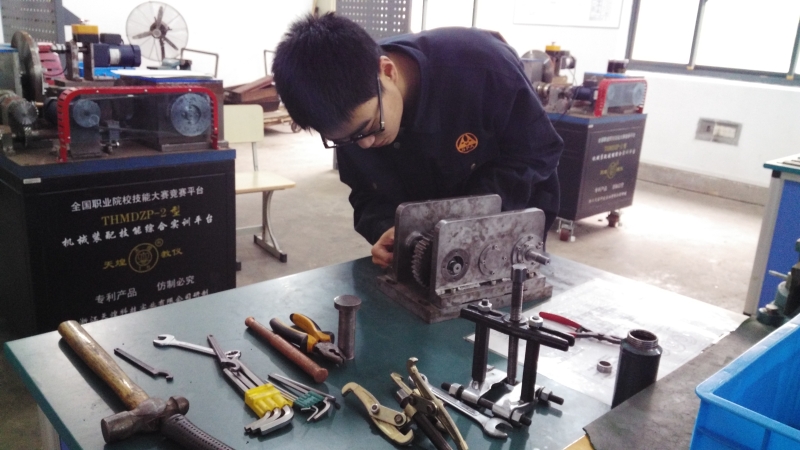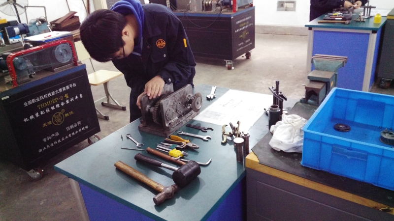 12月13、14日两天最后一批20名学生完成了这个项目的比赛。在比赛中学生们全神贯注,争分夺秒,从比赛中可以看到同学们的专业热情和认真学习的态度。操作中同时还要注意安全生产和文明生产,把平时在课堂教学中的“5S”管理理念贯彻其中。也就是在整个操作过程中,要求工具始终摆放整齐,操作完成后把场地打扫干净,工具归位,只有这样才能使学生养成良好的工作习惯,培养学生良好的工作态度。