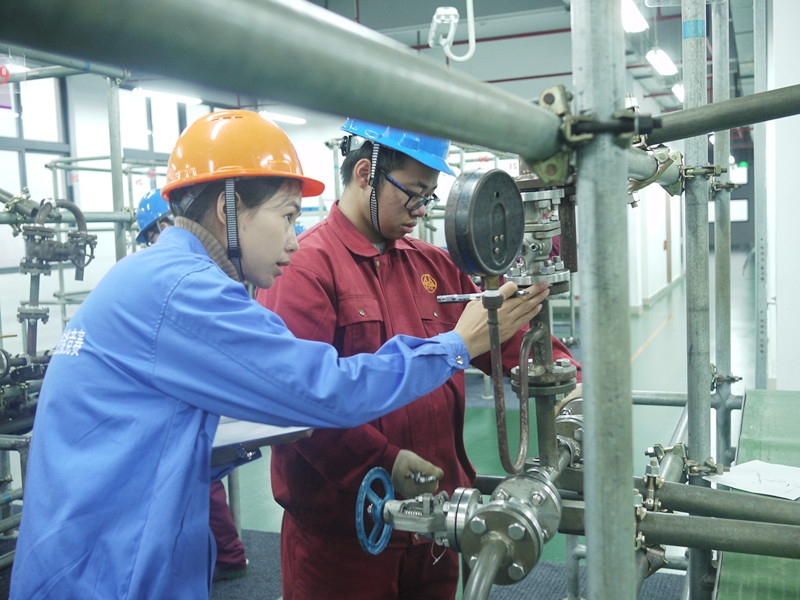下午14时15分,考评员宣布比赛正式开始,参赛同学佩戴好安全帽、工作手套,根据考题要求,依次领取各类管件、阀门、螺栓螺母、垫片等物品。领料完毕后,参赛者开始搭建各自考题上所示的管路。