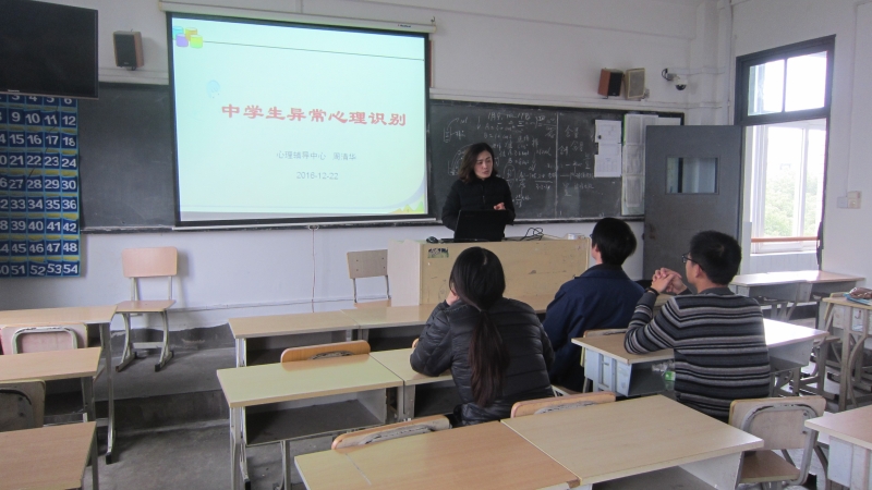 12月22日,2016-2017学年第一学期新班主任培训第九期在北教一401教室如期举行。心理辅导中心周清华为我们开设了《中学生异常心理识别》讲座。