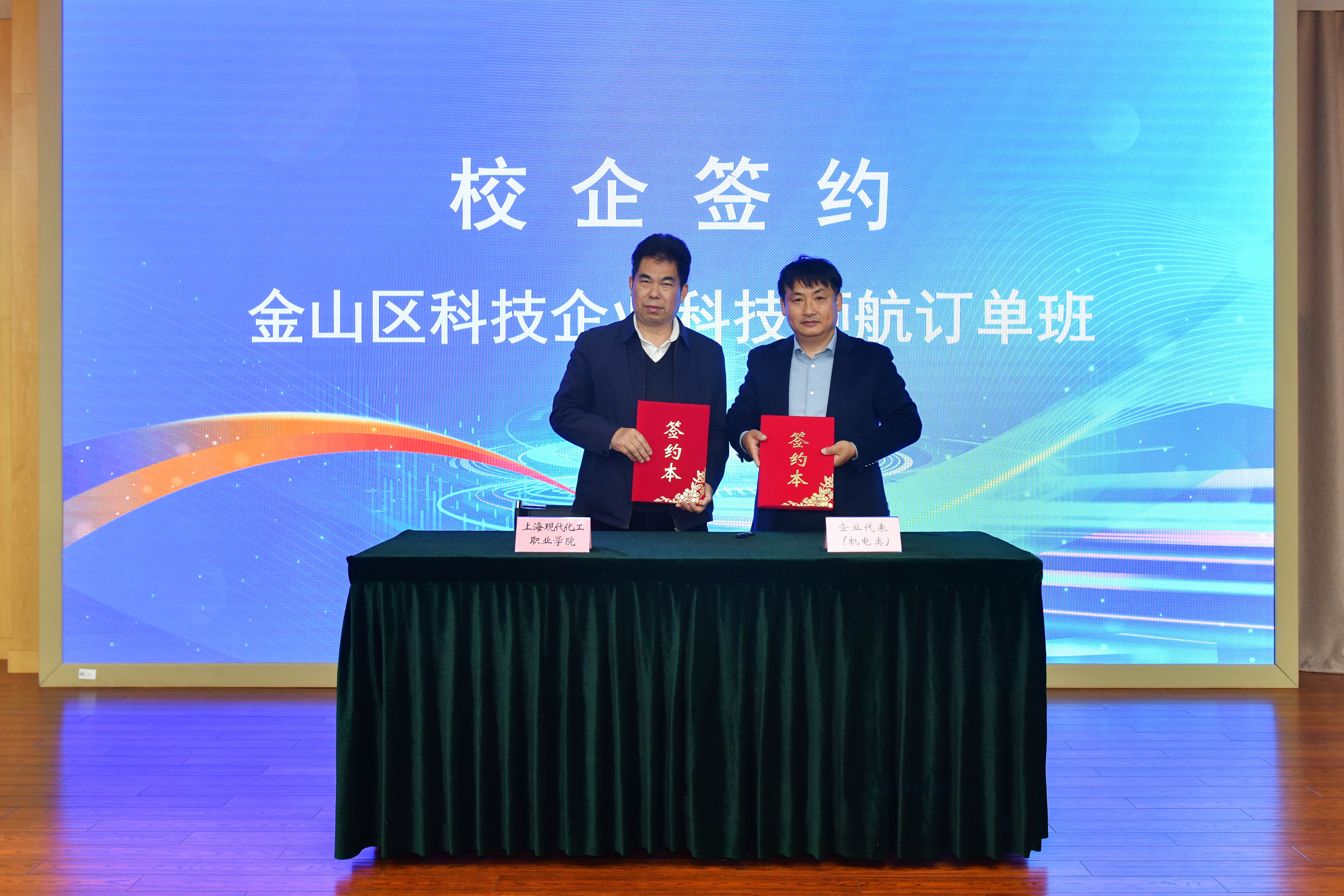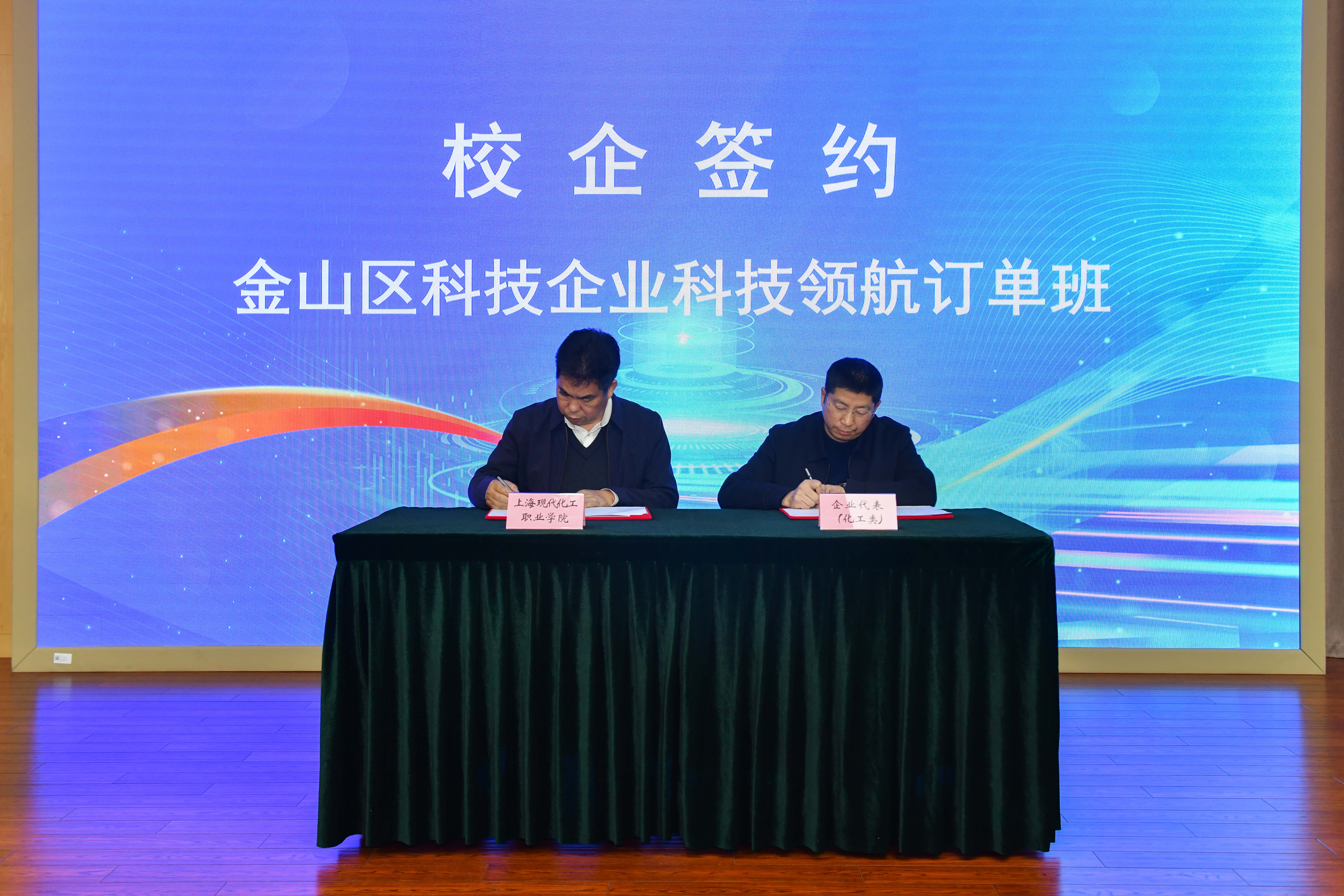 3月28日,金山区科技企业“科技领航订单班”组班仪式在学校举行。金山区教育局副局长李松皓,金山区科委党组副书记、副主任徐红,上海碳谷绿湾公司副总经理王益明,金山区科委科创中心主任杨玲,学校党政领导班子,9家合作企业及师生代表出席活动。