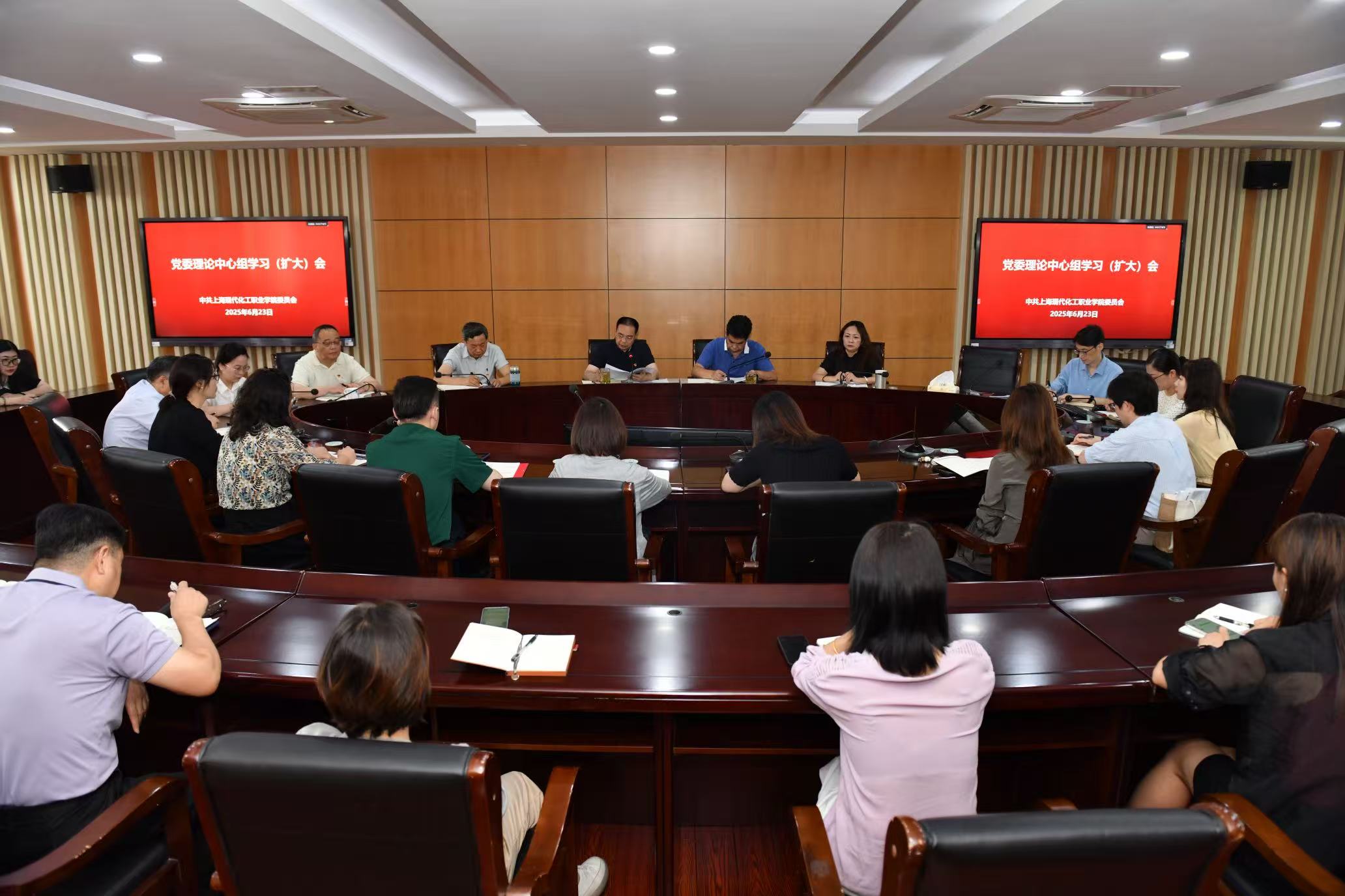 6月23日,校党委召开中心组学习(扩大)会议,传达上海市、市教卫工作党委、区教育工作党委相关会议精神。校党委书记高炬、校长陈晓斌、党政领导班子、全体中层干部参加会议。